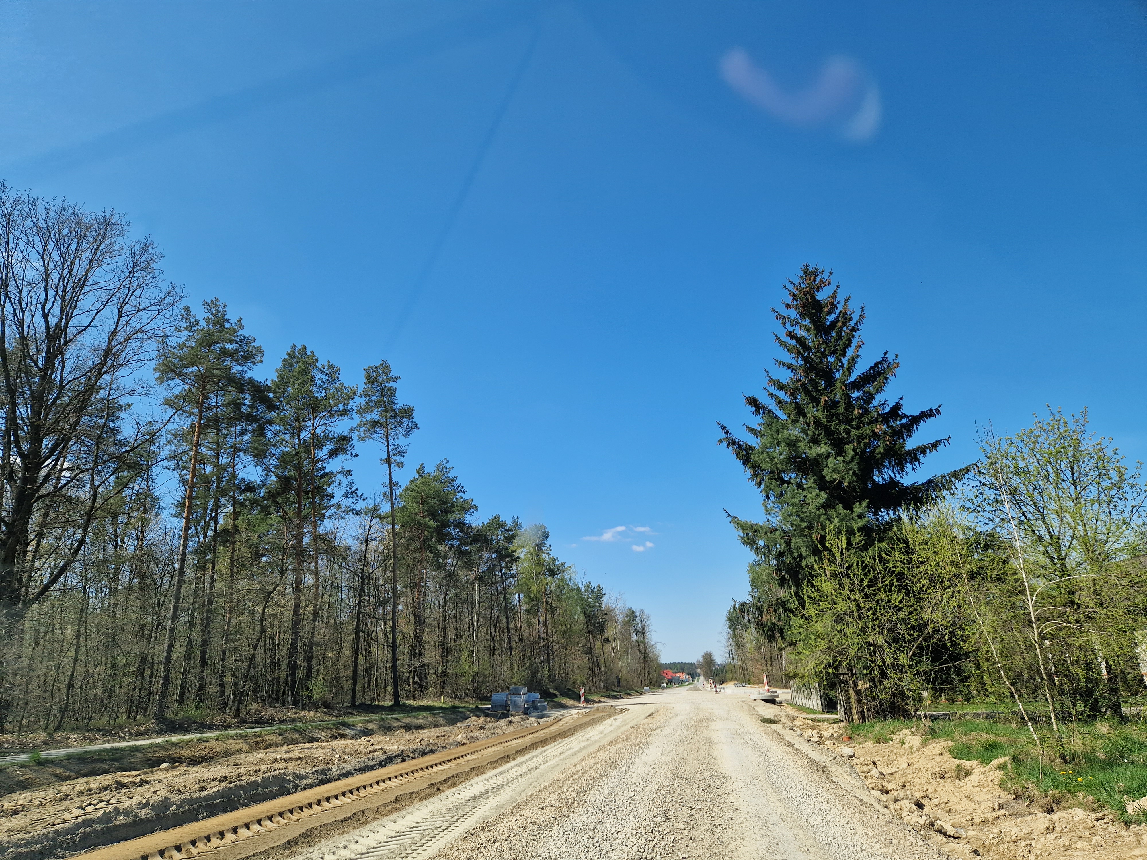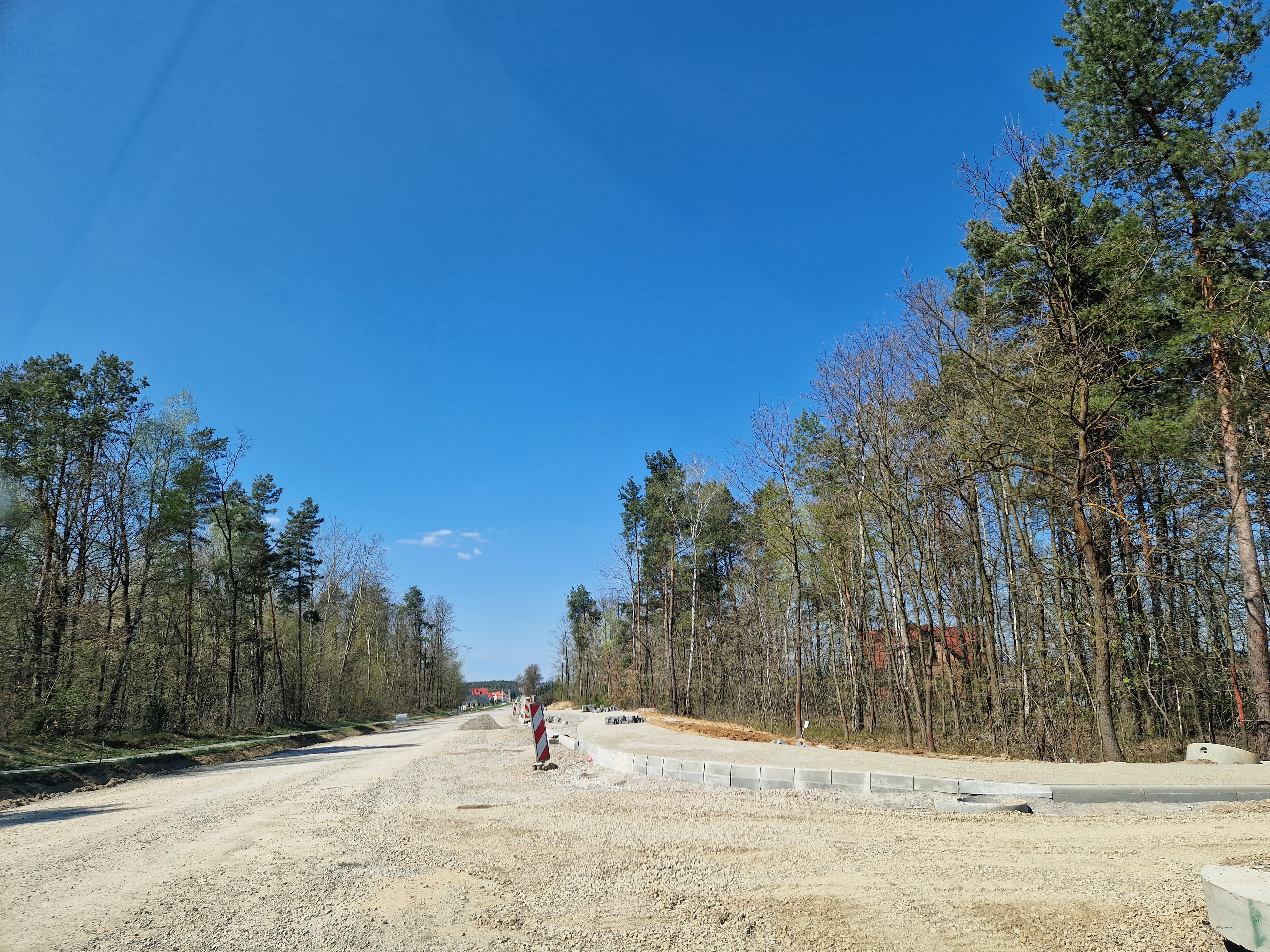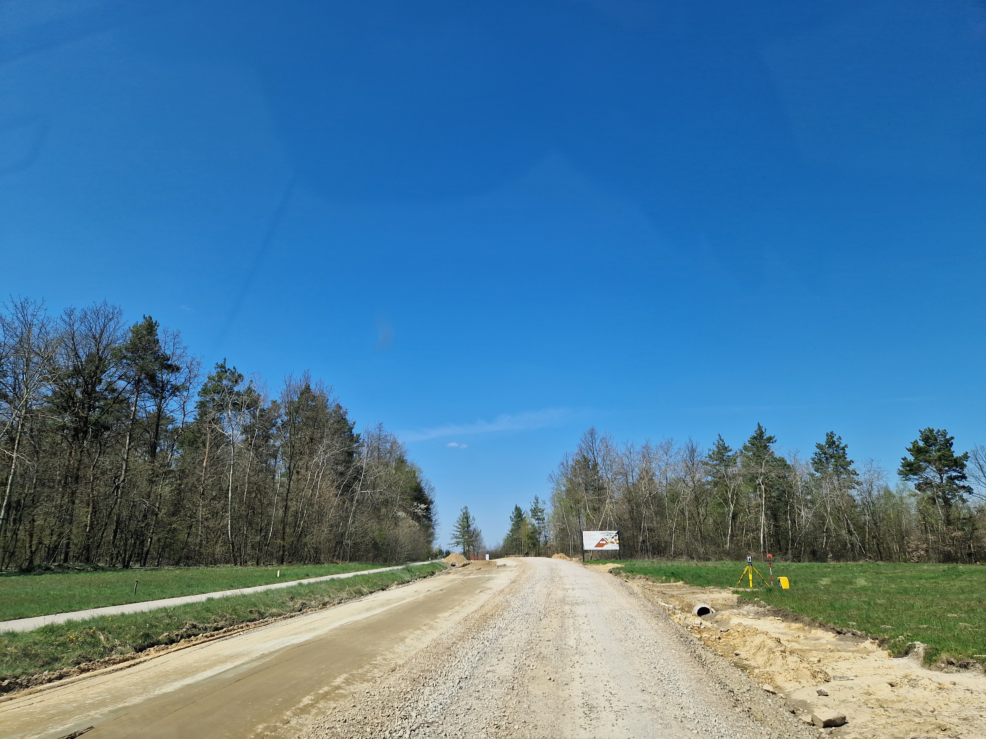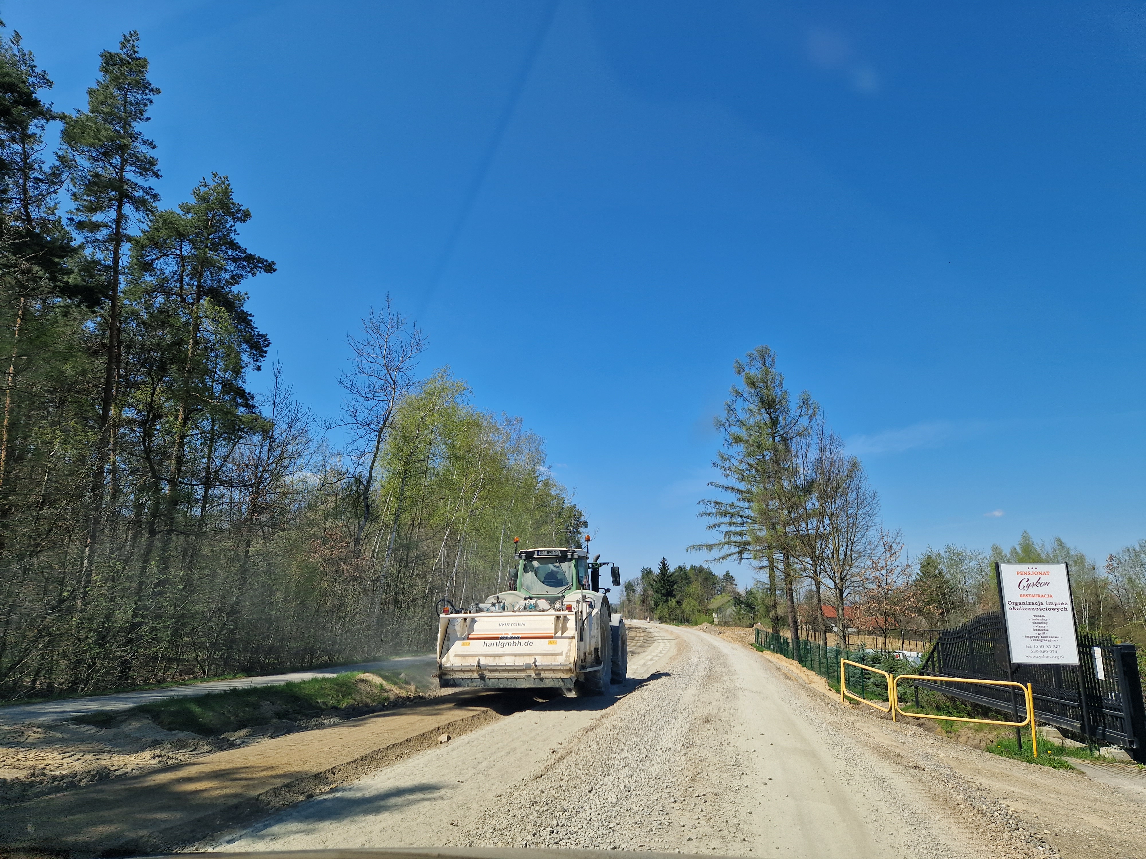 Warstwa bitumiczna ułożona już na większej części drogi. Postęp prac w kwietniu